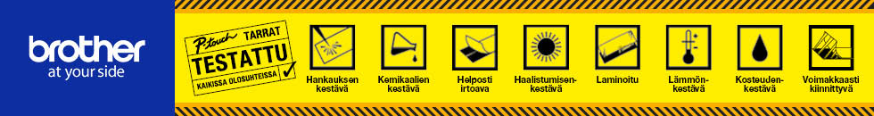 Dymo ja Brother tarratulostimien nauhat ovat suunniteltu kestämään kulutusta, kosteutta, lämpötilanvaihteluita ja kemikaaleja, joten ne soveltuvat sekä sisä- että ulkokäyttöön. Tarjolla on useita eri leveyksiä, värejä ja materiaalivaihtoehtoja, joiden avulla voit luoda juuri sinun tarpeisiisi sopivat merkinnät.